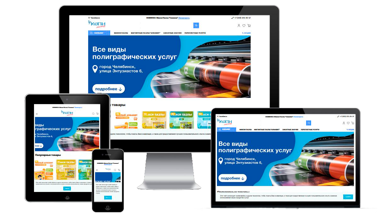 Копимастер – копи-центр полного производственного цикла с широким перечнем услуг и ассортиментом производимой продукции. В связи с расширением деятельности компании и спектра услуг было принято решение о создании представительства компании в Интернет.